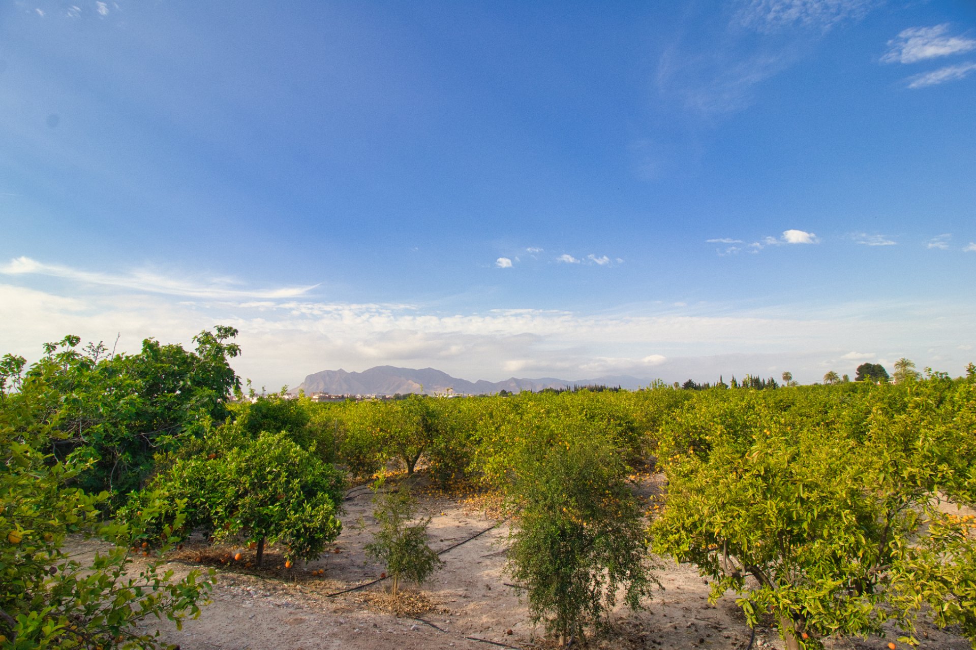 Het perceel beschikt over een groot waterreservoir dat wordt gevuld met goedkoop irrigatiewater, waarmee meer dan 350 fruitbomen, voornamelijk citroenen, worden bewaterd. Een van de opslagruimtes is uitgerust met alle leidingen en irrigatiesystemen om de bomen te bewateren en te bemesten. Er is een oude toiletruimte die gerenoveerd moet worden.